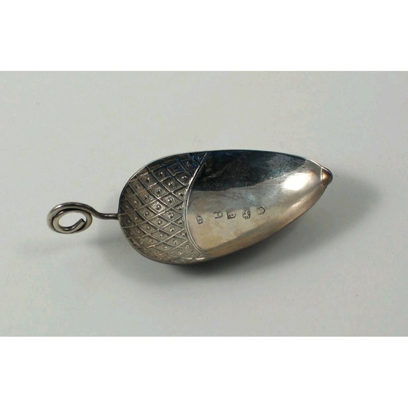 A George III caddy spoon, with an acorn bowl and coiled wire handle, by Samuel Pemberton, Birmingham 1801.