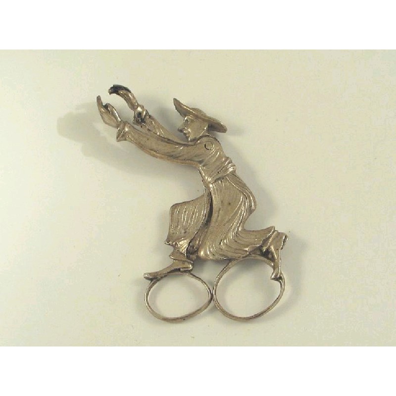 A pair of continental novelty sugar nips, in the form of a preacher with clasped hands, unmarked, probably early 20th century. 3.75in (9.5cm) long. 2.25oz.