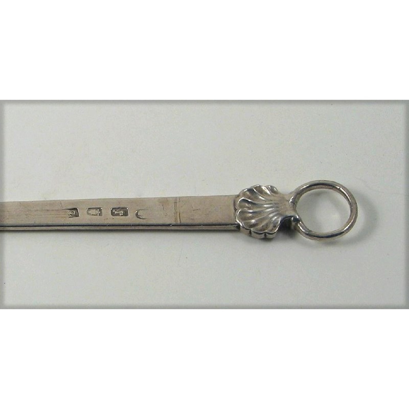 A George III meat skewer, with a cast shell and ring handle, makers amrk '?s' London 1765, 11.6in, (29.5cm), 2.75oz.