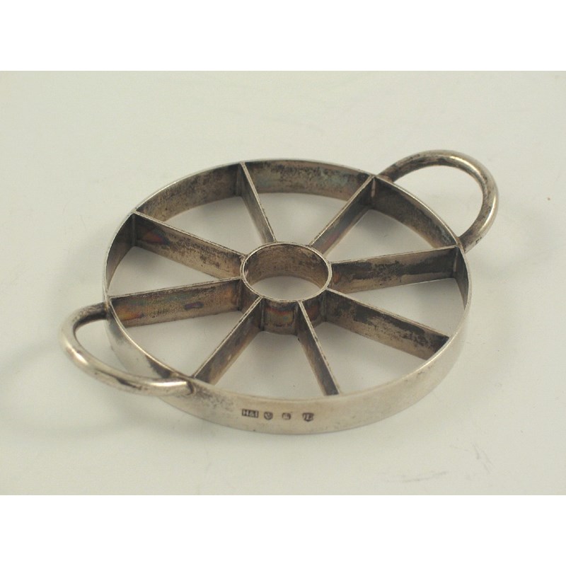 A modern Scottish apple corer/segmenter, plain with two handles, by Hamilton & Inches, Edinburgh 1916, 3.5in (9cm) diameter, 2.5oz.