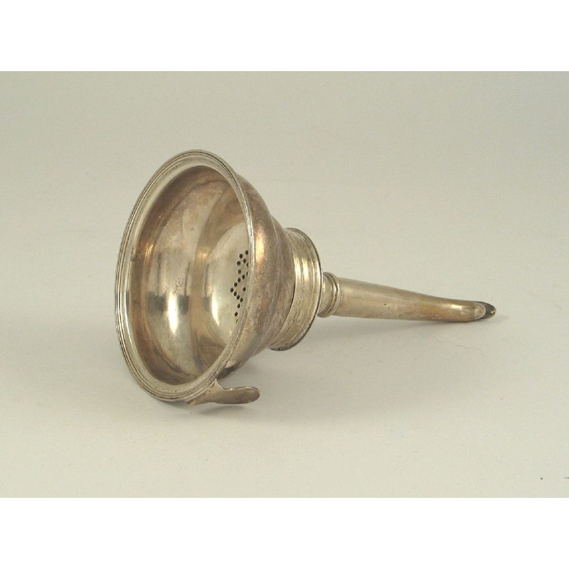 A George III wine funnel, with a reed rim and tapering spout, muslim ring by Robert Hennell, London 1768, 5.5in (14cm)high, 3oz.