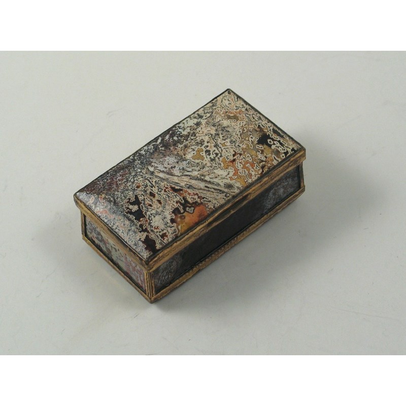 An early 19th century gilt metal mounted hard stone snuff box, set with mottled panels on the sides, base and cover, unmarked, probably continental, 1st quarter 19th century.