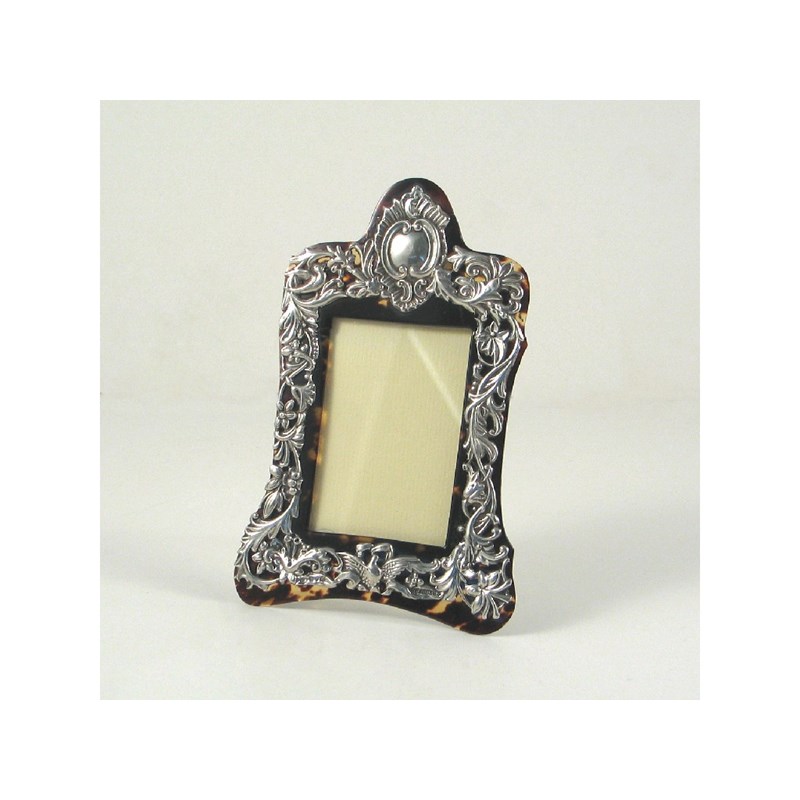 A late Victorian mounted tortoiseshell frame, with a plated easel back, the mount hallmarked Birmingham 1891, 6in (15.25cm) high, probably an alteration.