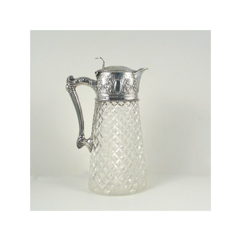 A Victorian mounted cut glass claret jug, with a tapering oval body and embossed mount, by W and G Sissons, Sheffield 1877, 9.7in, (24.5cm)high.