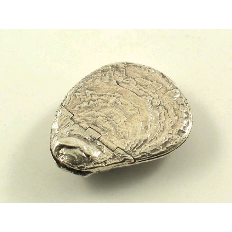 A Victorian naturalistic snuffbox, cast in the form of an oyster shell with a concealed hinged cover by John Harrison, London 1856, 2.2in (5.4cm)wide, 1.5oz.
