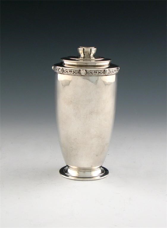 tapering circular form, Celtic border, on a circular foot, height 11cm, approx. weight 3.5oz.