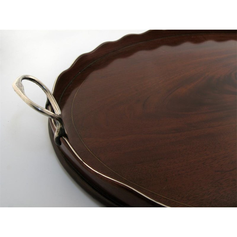 A George III Scottish silver mounted mahogany gallery tray,