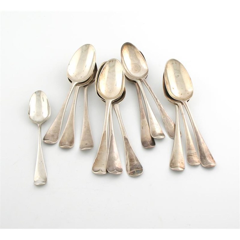 A collection of George II and early George III silver Hanoverian pattern tablespoons,