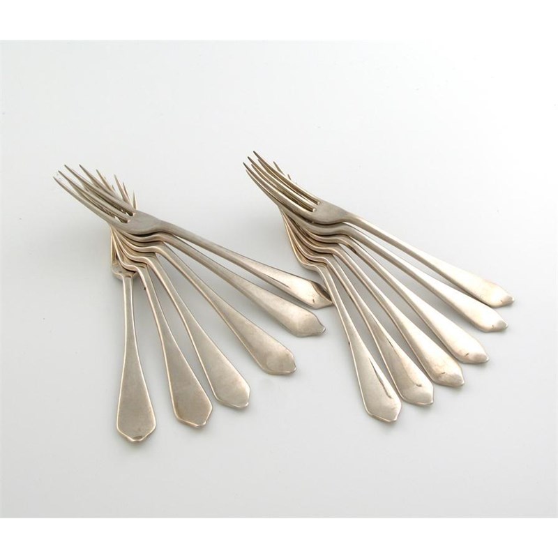 A set of twelve Edwardian silver Dognose pattern dessert forks,