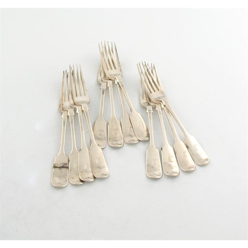 A set of twelve Victorian silver Fiddle pattern dessert forks,
