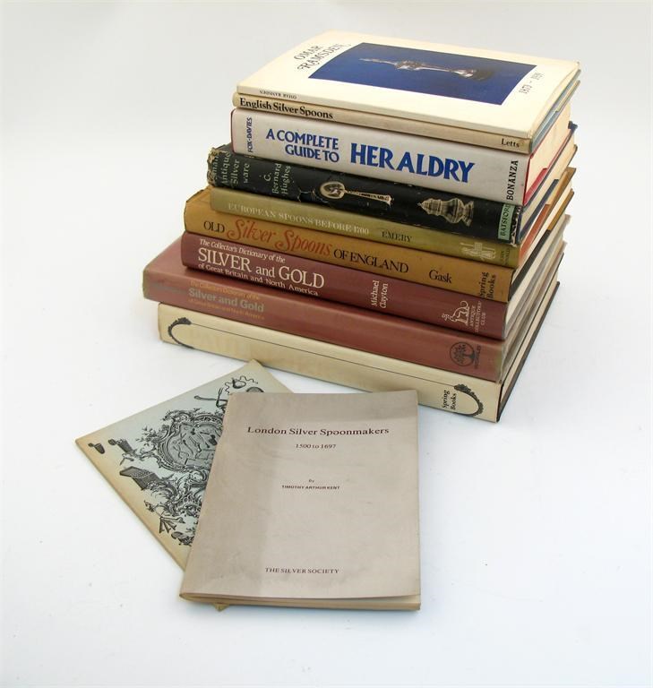 A quantity of assorted books relating to silver; including Penzer, N M; Paul Storr 1771-1844 Silversmith and Goldsmith; two copies (edition 2 and American edition 1) of The Collector's Dictoionary of the Silver and Gold of Great Britain and North America, by Michael Clayton; and eight other reference books. (11).