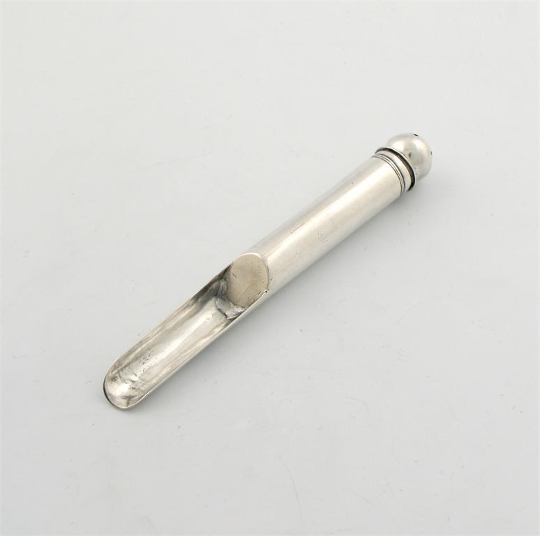 cylindrical form, the hollow handle with a screw off ball finial with pierced decoration, length 13cm.