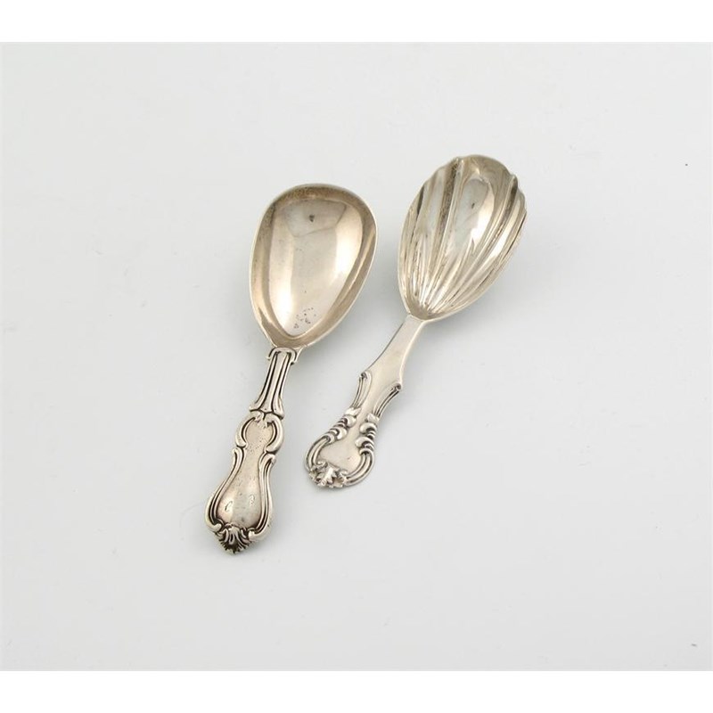 11.3cm, plus a silver Victorian pattern caddy spoon, by W. R Sobey, Exeter 1847, length 11cm. (2)