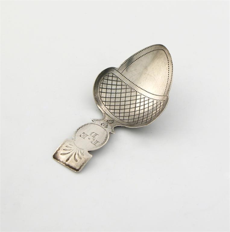 acorn shaped bowl with engraved decoration, the terminal scratch initialled 'R*E' over 'D', length 7cm.