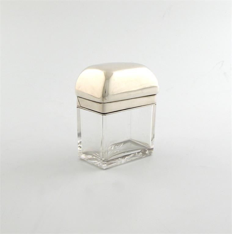 rectangular form, domed hinged cover with a silver-gilt inner domed cover, height 8.8cm.