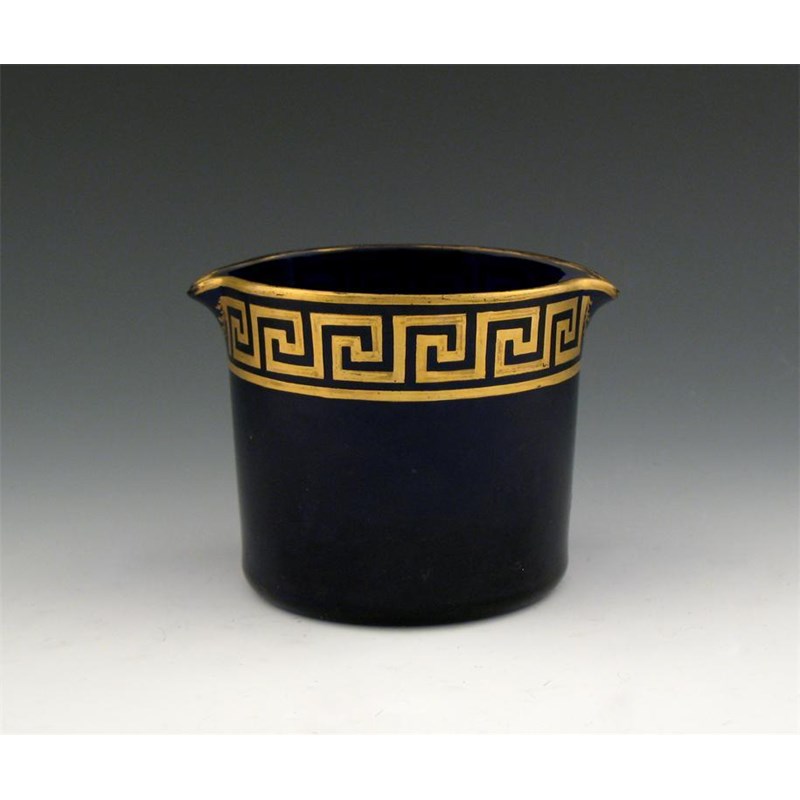 slight tapering circular form, double lipped and with a gilt Greek key border, height 9.3cm.