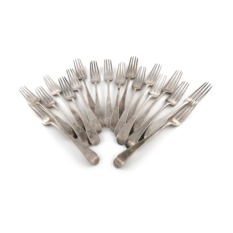 the terminals with crests, one fork damaged, approx. weight 38oz. (18)