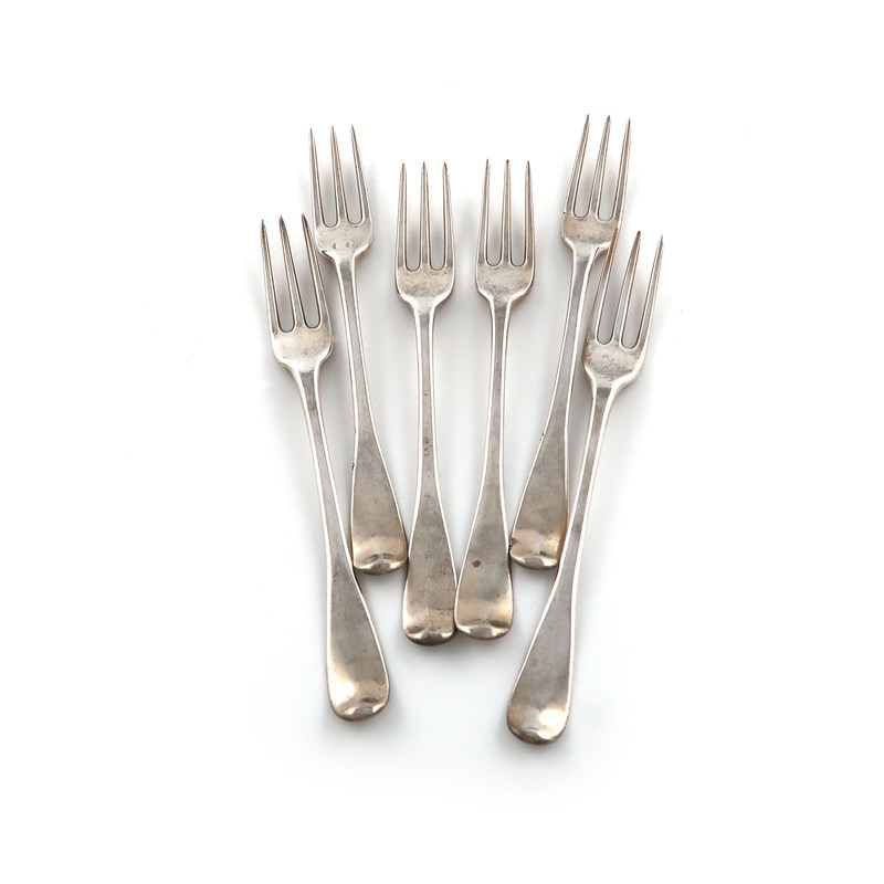 A set of six George II Three-pronged Hanoverian pattern dessert forks