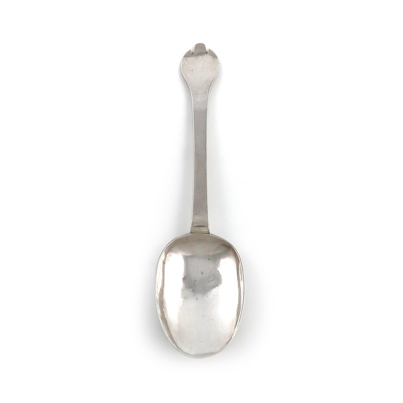 the reverse of the oval bowl with a plain rat-tail, the reverse of the terminal with scratch initials 'M' over 'R*I', length 18.9cm, approx. weight 1.5oz.