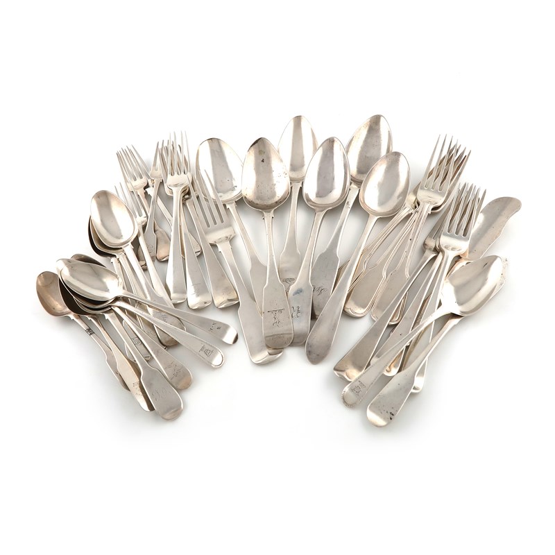 A collection of antique Irish silver flatware