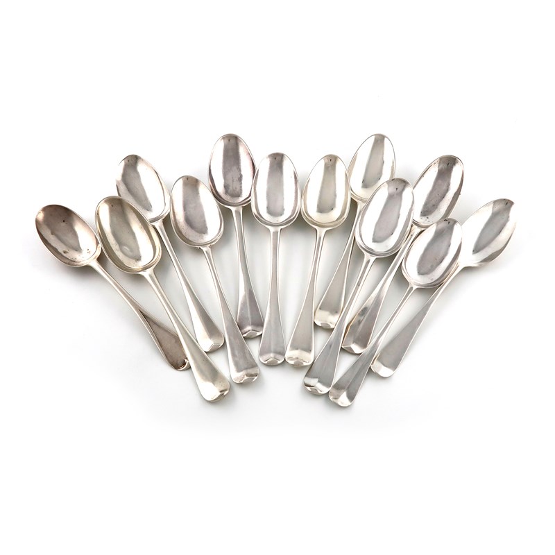 A collection of 18th century silver Hanoverian pattern tablespoons,