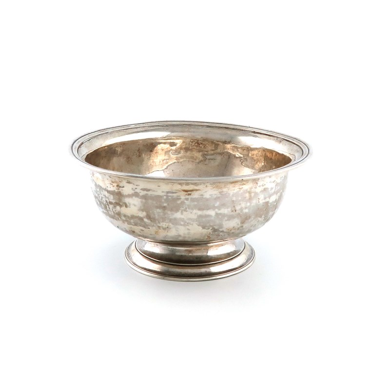 plain circular form, on a raised circular foot, diameter 16.7cm, approx. weight 10.5oz.
