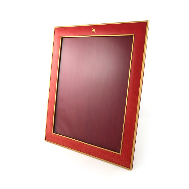 Retailed by Asprey London, a modern gilt-metal and pink leather photograph frame,