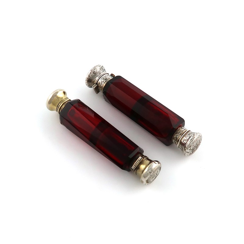 A Victorian silver-mounted red glass double scent bottle