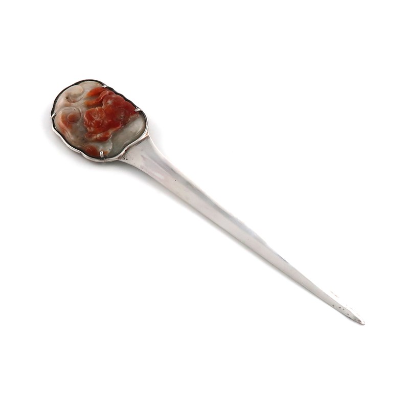 A jade and metalware paper knife