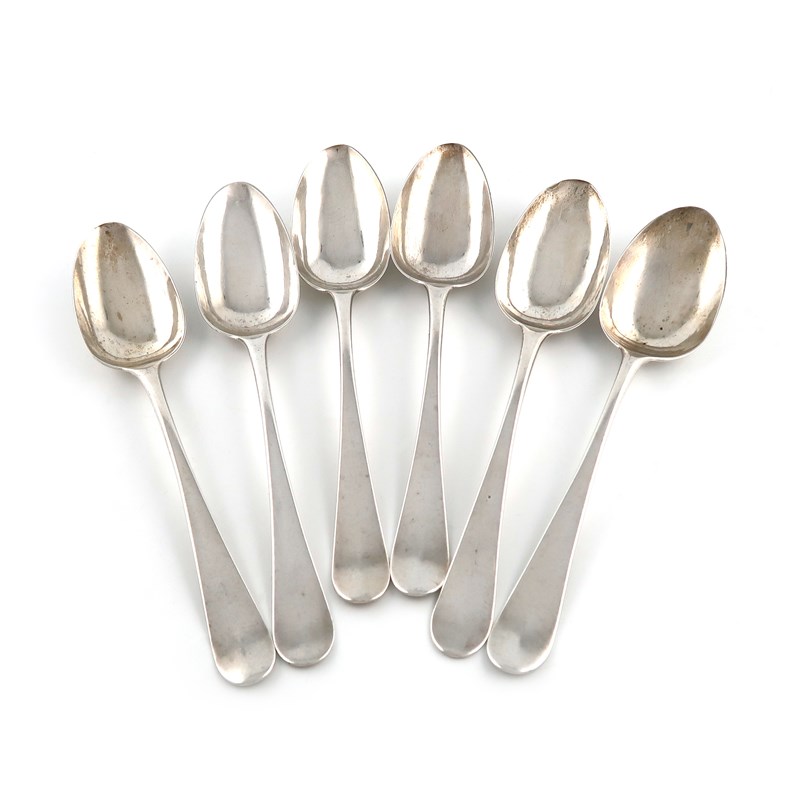 A set of six late 18th / early 19th century American silver small tablespoons,