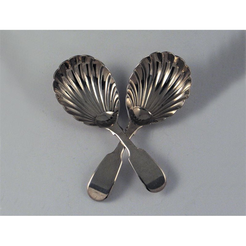 A pair of George IV fiddle caddy spoons, with fluted bowls, by Messers Eley and Fearn, London, 1823, (2).