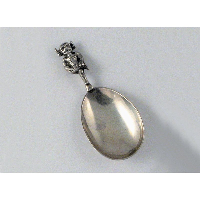 A modern caddy spoon with a Lincoln imp finial, maker A J B, Birmingham, 1936.