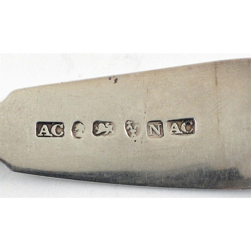 An unusual George IV fiddle toddy ladle, initialled 'R C', by Alexander Cameron of Dundee, makers mark struck twice together with Newcastle hallmarks for 1827.