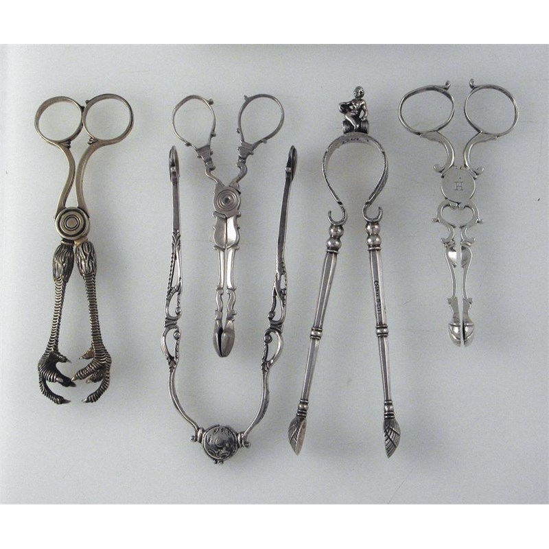 A pair of George III sprung tongs, with openwork arms, by Susanna Barker, circa 1780.