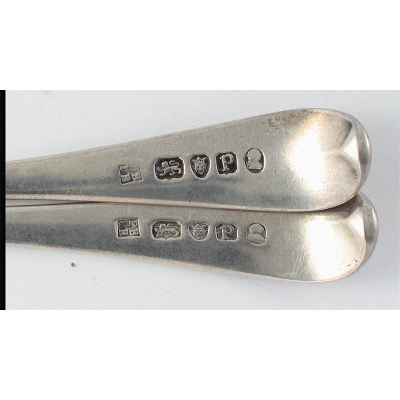 By Peter and John Bateman: A pair of George III old English pattern dessert spoons, initialled, London, 1790, 2oz, (2).