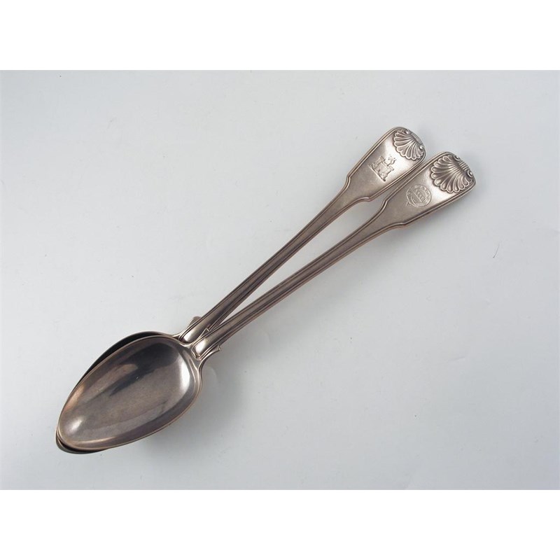 A George III/Iv fiddle, thread and shell pattern basting spoon, (union shell heel), by Thomas Wallis and Jonathan Hayne, London, 1820, 7oz.