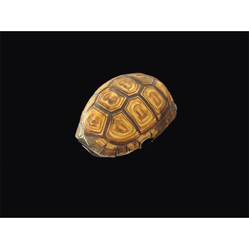 An early Victorian mounted terrapin shell box, with two compartments and two covers arranged about a central hinge, engraved with thistles and foliage and inscribed "R. McMichael', gilt interior, by Edward Edwards, London 1838, 3.5in (9cm).