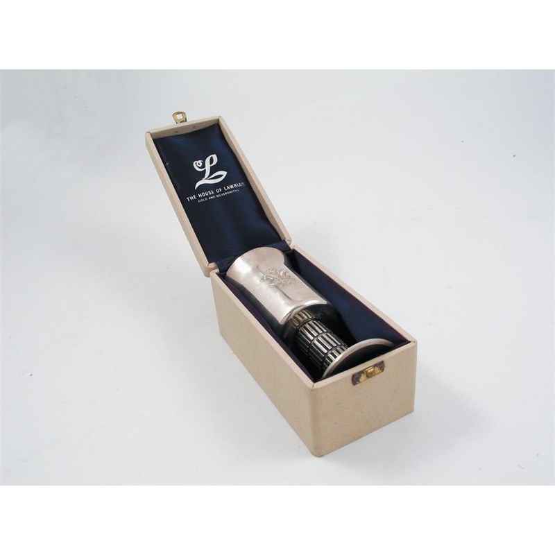 By Christopher Lawrence A modern goblet, with a textured pedestal, and a gilt interior, made to commemorate the 'Investiture of Charles, Prince of Wales, 1st July, 1969', London, 1968, 5.5in (13.2cm), 6oz, contained in original fitted case.
