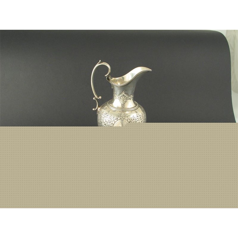 A Victorian vase shaped cream jug, with chased reserves and bead border, by R Martin and E Hall, London, 1872, 6.6in (17cm), 7oz.