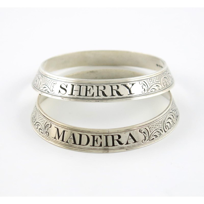A pair of Victorian silver neck ring wine labels