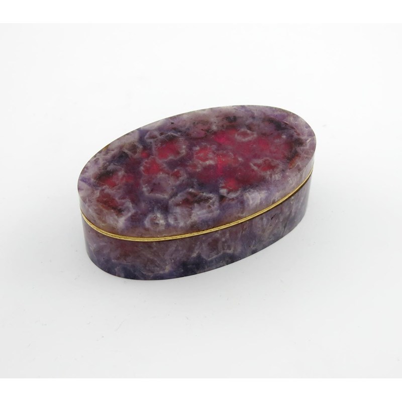 oval form, hinged cover, the mount with a simple wavy-edge border, gold lined interior, length 8.7cm.