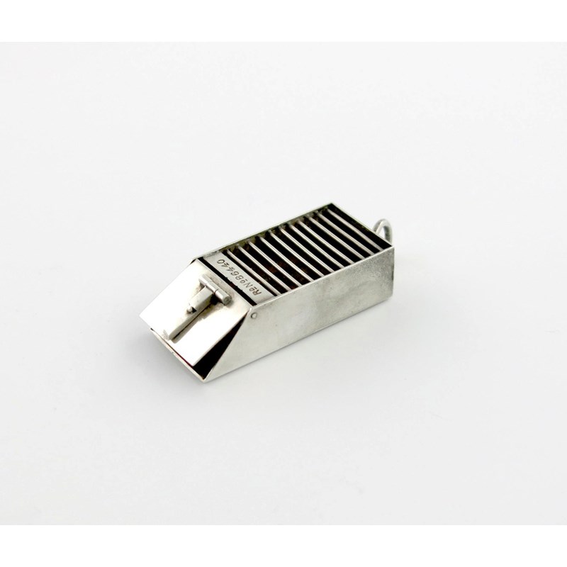 rectangular form, the cover with bars, the underside with a striker, hinged cover, length 4cm, approx. weight 0.4oz.