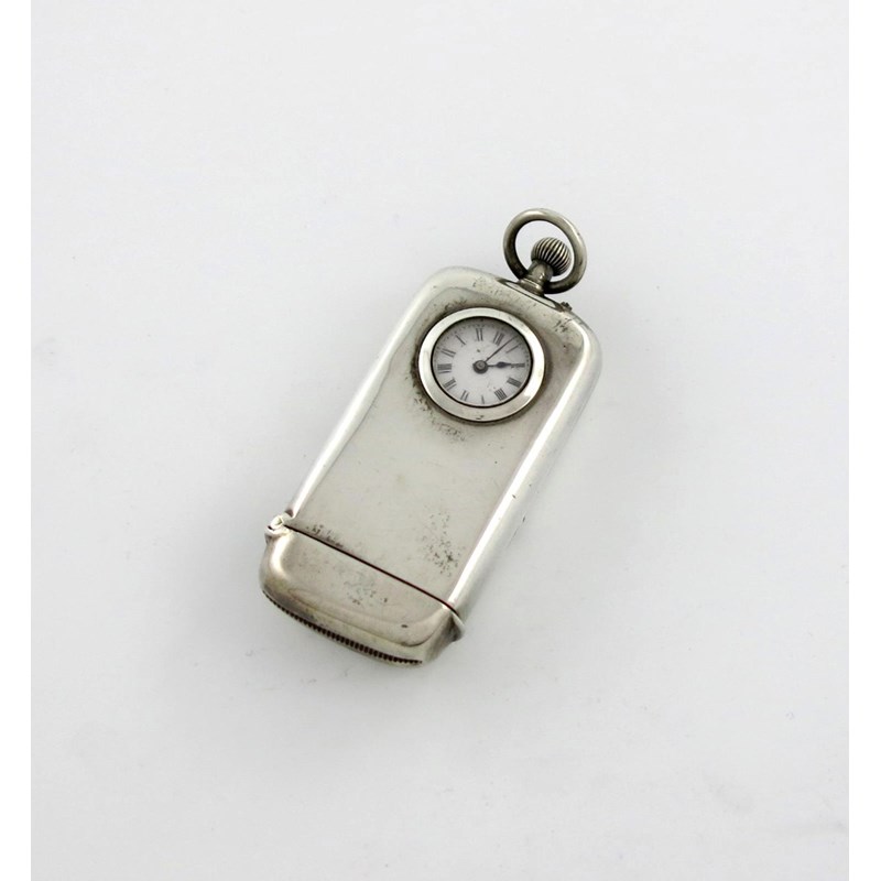 A late-Victorian silver sovereign / vesta case with a watch