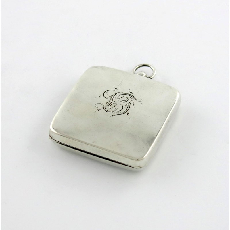 rectangular form, hinged covers, designed to fit a sovereign and a half sovereign, with a ring attachment, initialled, length 6.3cm, approx. weight 2oz.