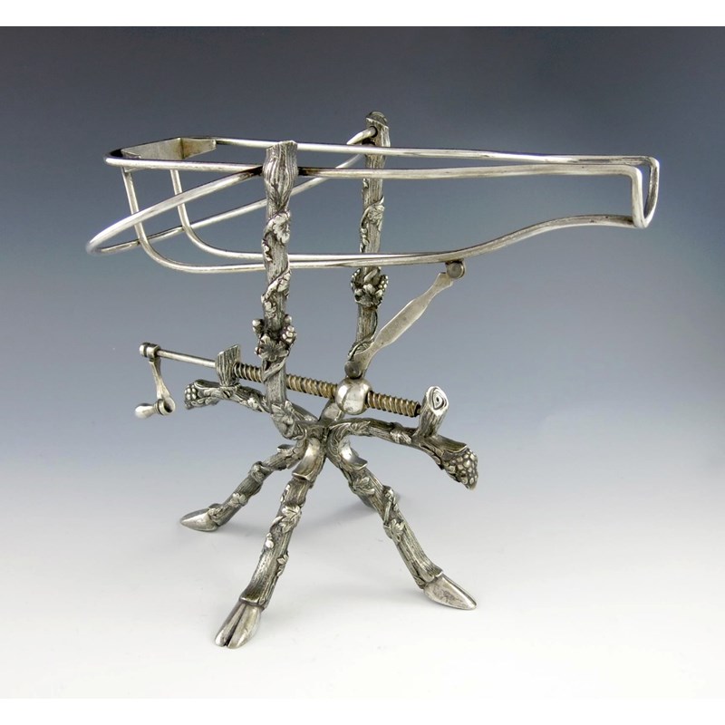 the simulated grapevine supports on four hoof feet, with a turning handle and tilting mechanism, central carrying handle, height 38cm.