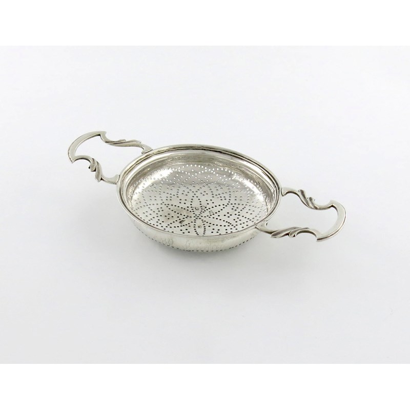 circular form, with scroll side handles, the circular bowl with pierced decoration, length 18.8cm, approx. weight 2.6oz.