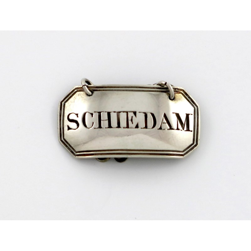 rectangular form, canted corners, reeded borders, incised 'SCHIEDAM', length 3.5cm, approx. weight 0.2oz.