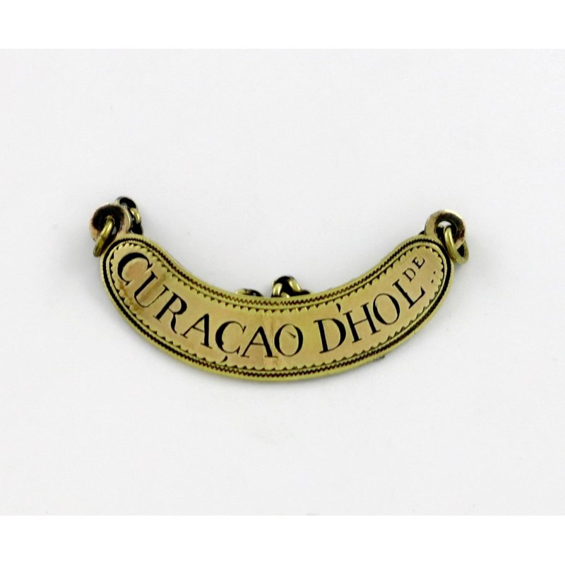 scroll form, bright-cut decoration, incised and blue lettering 'CURACAO D'HOLDE', length 4.5cm, approx. weight 0.2oz.