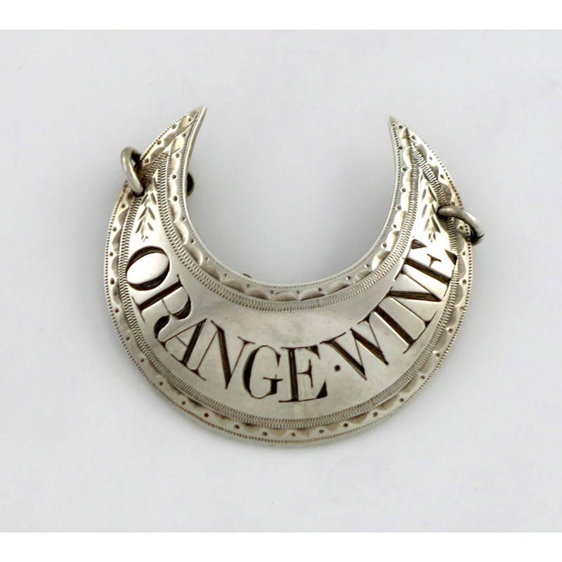 crescent form, bright-cut borders, incised 'ORANGE.WINE', length 4.5cm, approx. weight 0.5oz.