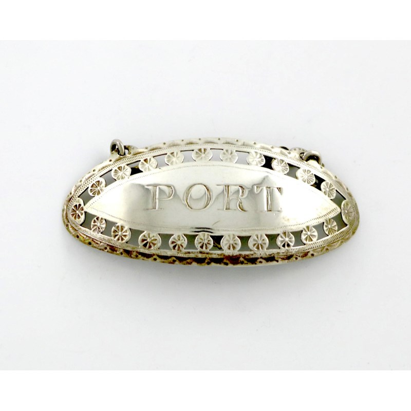oval form, pierced and engraved decoration, incised 'PORT', length 6cm, approx. weight 0.2oz.
